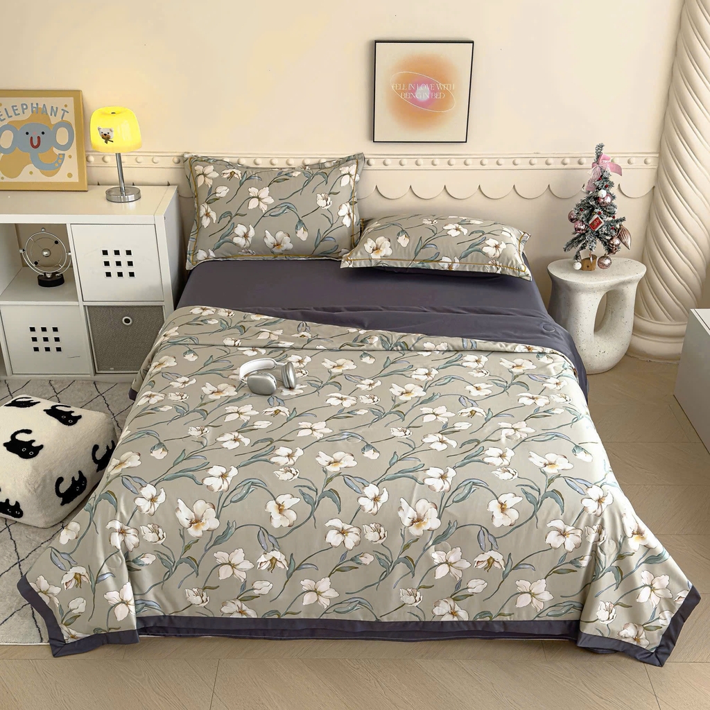 📦 Bộ chăn ga gối hè lụa Thái gồm: